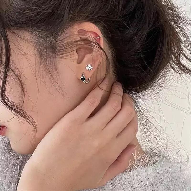 ファッション 韓国 小さいハート 小さいピアス ブラックハートピアス