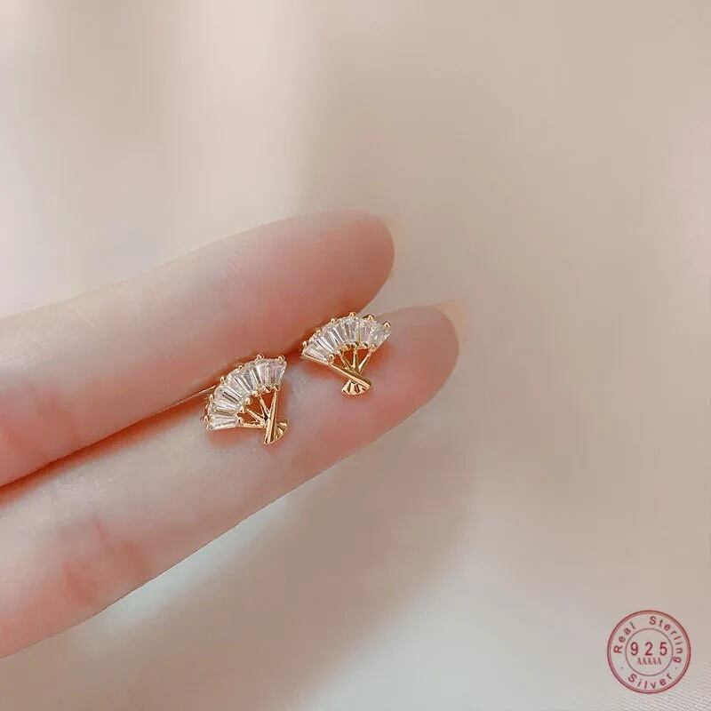 ピアス 扇子 スターリング silver925 ジルコン スタッドピアス
