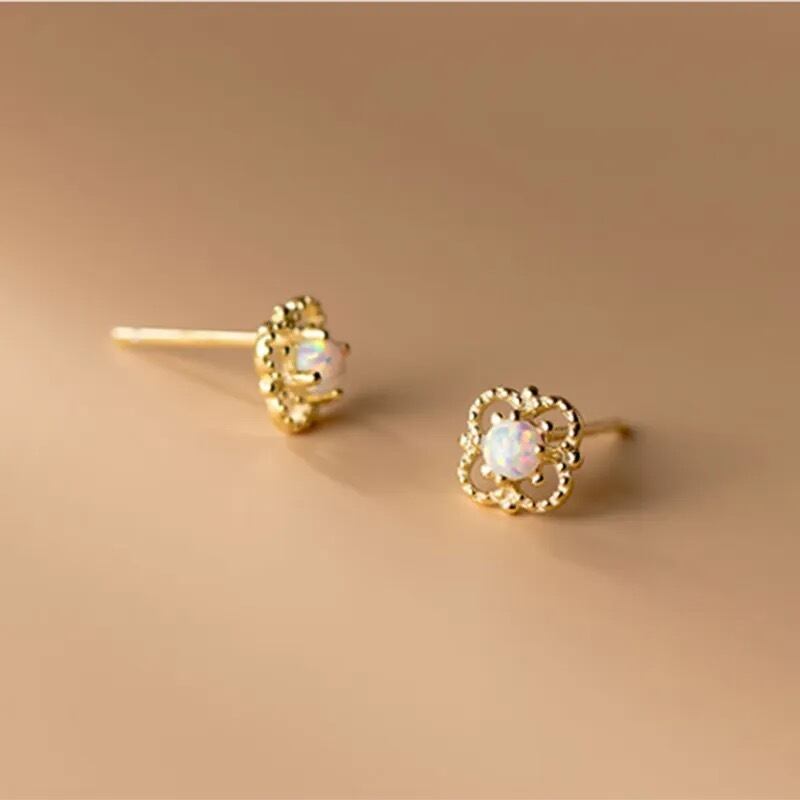ピアス シルバー925 金属アレルギー対応 スタッドピアス レディース 人工オパールピアス