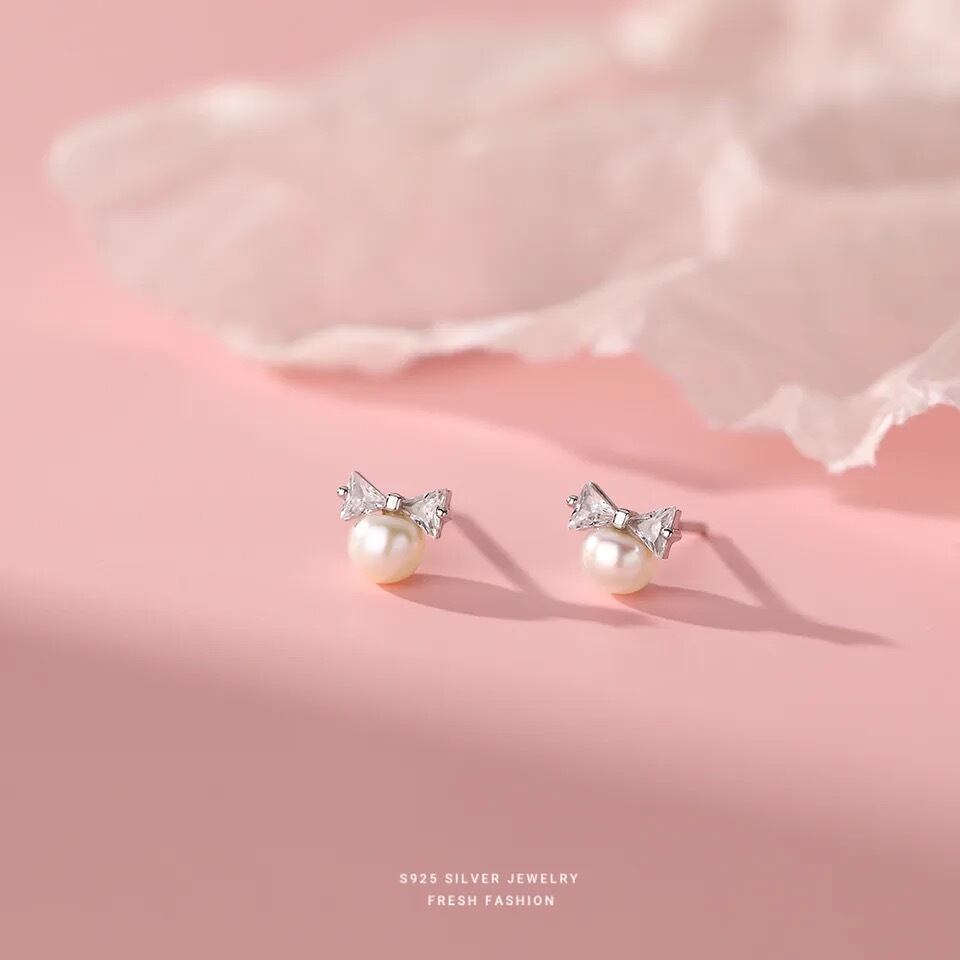 ピアス イミテーションパール リボン レディース スターリングシルバー925 スタッドピアス